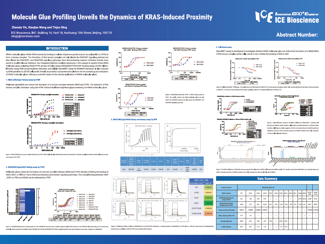 KRAS molecular glues inhibit KRAS activity by binding to cellular chaperone proteins (such as cyclophilin A, CYPA) to form a ternary complex. The formation of this ternary complex not only blocks the RAS/RAF signaling pathway but also blocks the RAS/SOS1 and RAS/PI3K signaling pathways, thus demonstrating superior inhibitory activity compared to small-molecule inhibitors. Our integrated platform employs advanced in vitro assays to explore these KRAS molecular glues, including KRAS/CYPA ternary complex assay, KRAS(ON)/CYPA/cRAF binding assay, 2D/3D cell proliferation assay, ERK phosphorylation detection, and cellular NanoBRET assay for RAS-RAF disruption. It also includes a p-ERK panel and a 2D/3D cell panel. Overall, we provide a comprehensive platform for the screening and evaluation of KRAS molecular glues, offering a scientific basis for the clinical application of KRAS molecular glues.