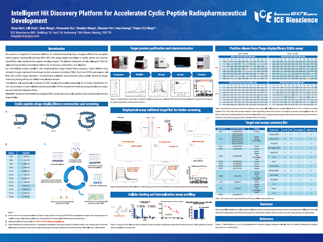 Our methodology employs parallel in vitro biophysical test, phage display library screening. Target validation was achieved through engineered recombinant protein constructs (including PSMA, DLL3 and GPC3) and isogenic cell lines with uniform target expression. Comprehensive evaluation was performed using modular functional assays measuring binding affinity and cellular internalization kinetics.